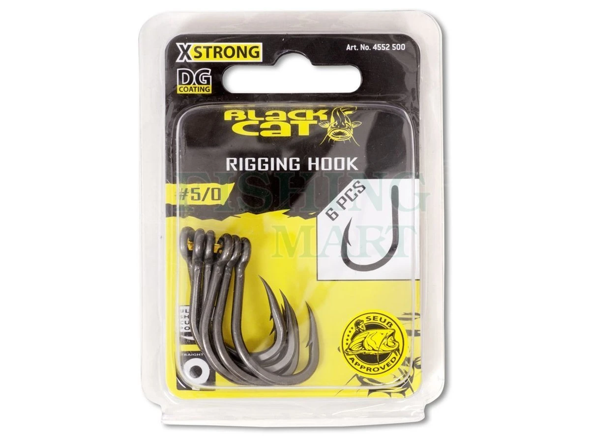 Rigging Hook to najsilniejszy pojedynczy haczyk w naszej ofercie. Trzon jest stworzony z najmocniejszej stali, a spawane oczko jest wystarczająco duże, aby przełożyć gruby mono lider. Dodatkowo długi koniec jest niesamowicie ostry. Rigging Hook sprawdza się, w każdej ekstremalnej sytuacji. Nieważne czy łowimy w pełnej zaczepów hiszpańskiej wodzie czy we Włoszech, gdzie zestawy są wrzucane pomiędzy kamienie. Hak cały czas jest w swoim żywiole. W mniejszych rozmiarach haczyk może być stosowany przy metodzie włosowej. „Powłoka DG” innowacyjna powłoka o znacznie gładszej powierzchni niż teflon. 4 razy odporniejsza na korozję w porównaniu ze standardowymi powłokami.