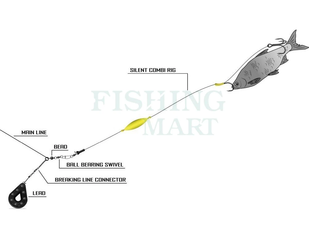 Waller Spezial gotowy przypon od Stefana Seuß. Zestaw Silent Combi Rig jest idealny do prezentacji rybki i innych naturalnych przynęt nad dnem na mocno przełowionych wodach. Lekki, nie rzucający się w oczy pływak u-float podnosi zestaw z przynętą w korytarzu żerujących sumów. Przynęta jest mocowana za pomocą przedniego, pojedynczego haka w okolicach głowy, a tylna kotwica w okolice ogona.