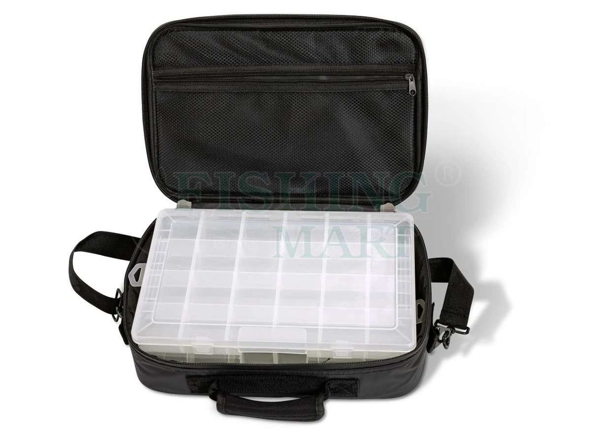 Torba na ramię dla spinningistów i aktywnych wędkarzy z dwoma plastikowymi pudełkami. Zapewnia wystarczająco miejsca na błystki wahadłowe, miękkie przynęty i teasery sumowe. Torba jest wygodna do noszenia i odporna na wodę i brud.