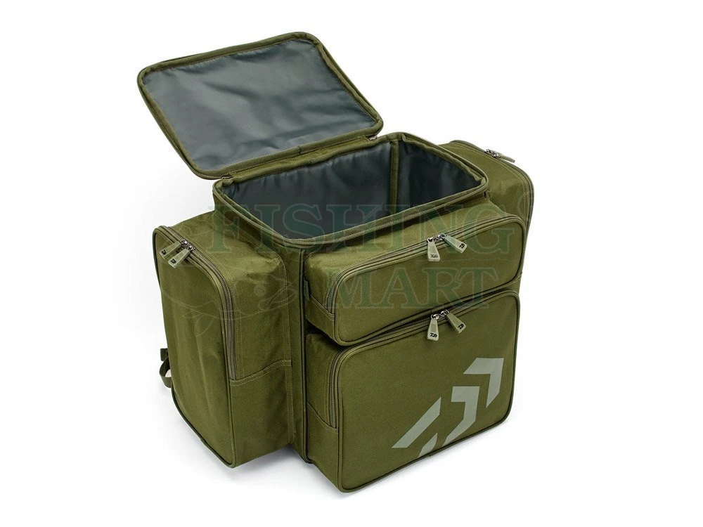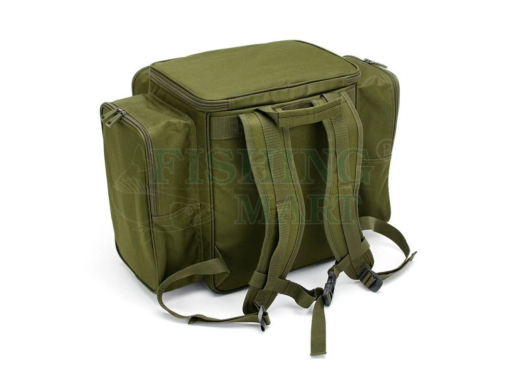 Lekki, wytrzymały i pojemny plecak. Z dwiema dużymi, bocznymi kieszeniami po obu stronach i dwiema dużymi przednimi kieszeniami na pudełka na przynęty, podpórki itp. Wnętrze można łatwo wyczyścić, gdy zajdzie taka potrzeba.Obszyte, komfortowe uchwyty i pas na ramię. Materiał: poliester