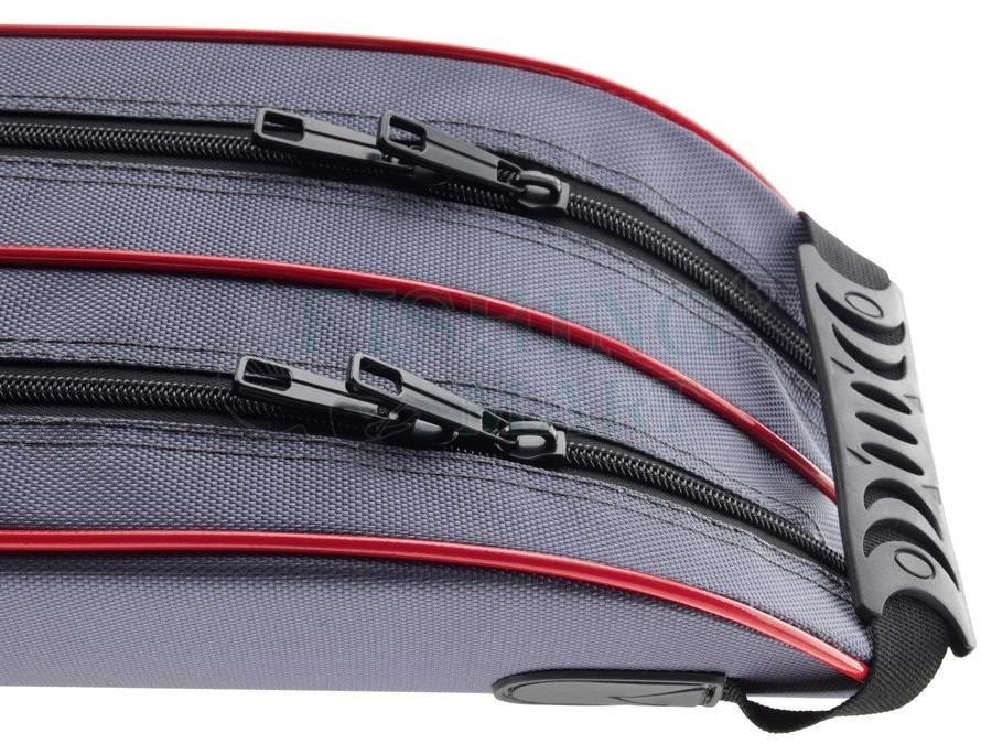 Półtwardy pokrowiec na wędki pomieści zależnie od modelu dwie lub trzy wędki z kołowrotkami. Zewnętrzne wzmocnienia absorbują uderzenia skutecznie chroniąc zawartość w trakcie transportu. Szeroki pas na ramię umożliwia komfortowe noszenie torby także na dłuższych trasach.