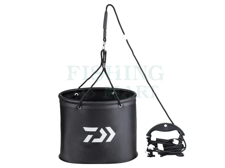 Małe, dobrze zaprojektowane, składane wiadro wędkarskie pozwala łatwo nabierać wodę z dowolnego zbiornika. Długa linka ze specjalnymi stoperami zapobiegającymi wyślizgiwaniu się jej z rąk. Na lince umieszczony jest nieduży ciężarek, który pomaga zanurzyć wiadro pod powierzchnię by bezproblemowo napełnić je wodą.