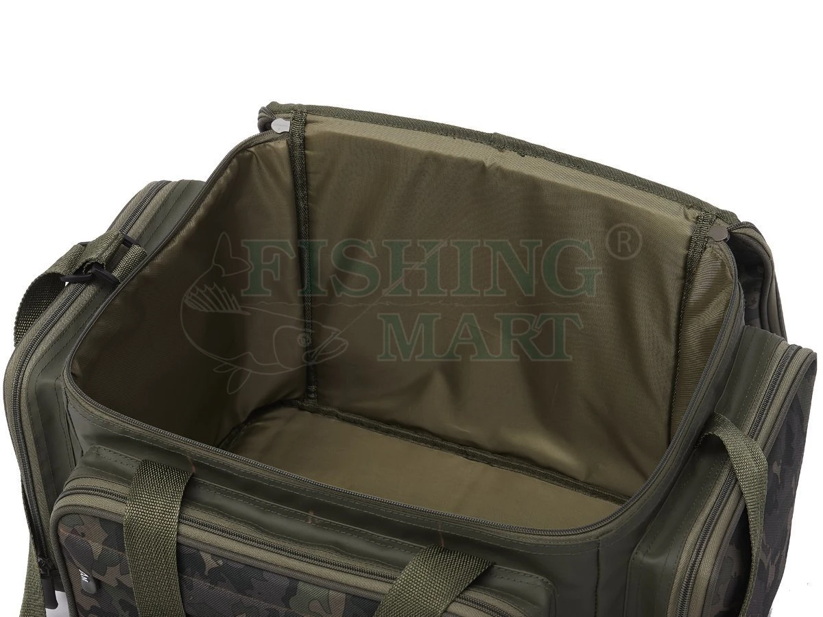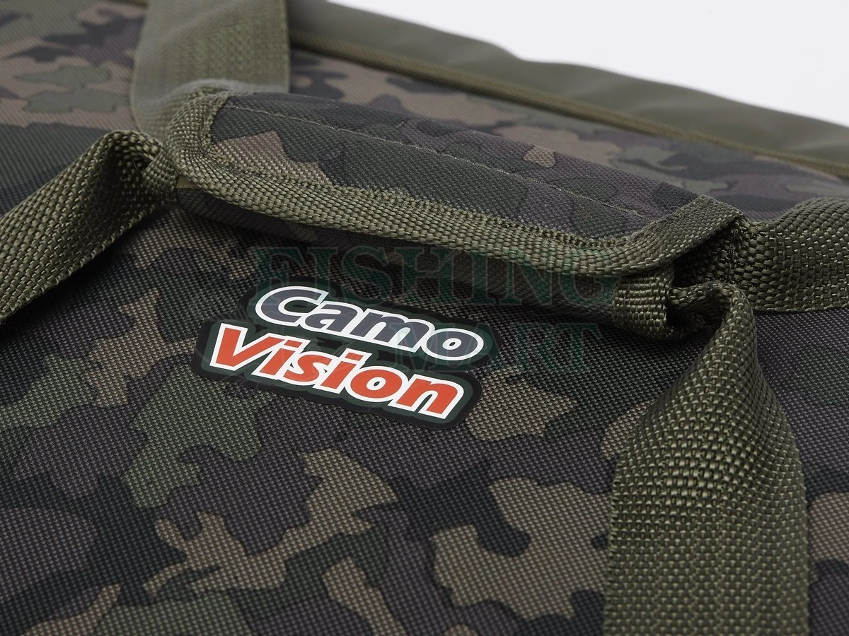 Ogromna torba! Mega pojemna… Wykonana z materiału Camovision 600D (100% poliester) z wyściełaną, łatwą do czyszczenia podszewką z PVC. Ma cztery wyściełane kieszenie zewnętrzne, uchwyty i pasek do noszenia z grubo pikowaną poduszką na ramię. Dodatkowo: spód torby jest wzmocniony płytą PE o grubości 2mm. Ze względu na kolosalny wręcz rozmiar, idealna na długie zasiadki.
