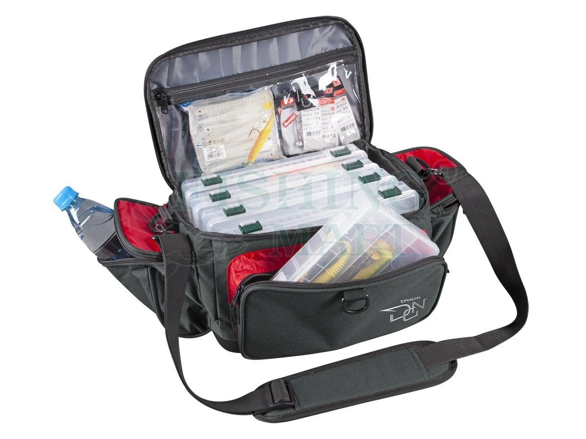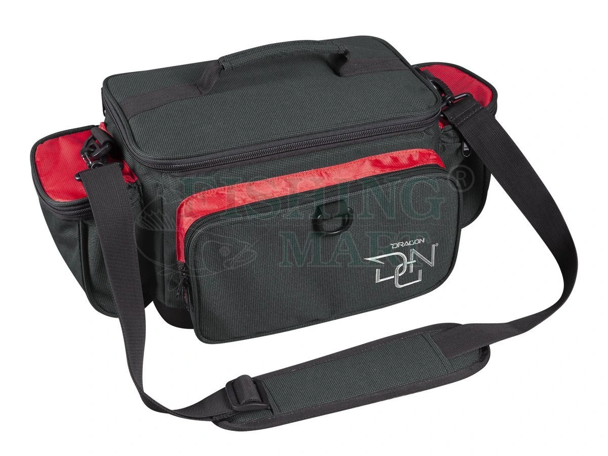 Torby spinningowe z pudełkami DRAGON DGN uszyto z bardzo mocnego, nieprzemakalnego nylonu typu Oxford 2600 o poczwórnej gęstości, wzmocnionego Cordurą.