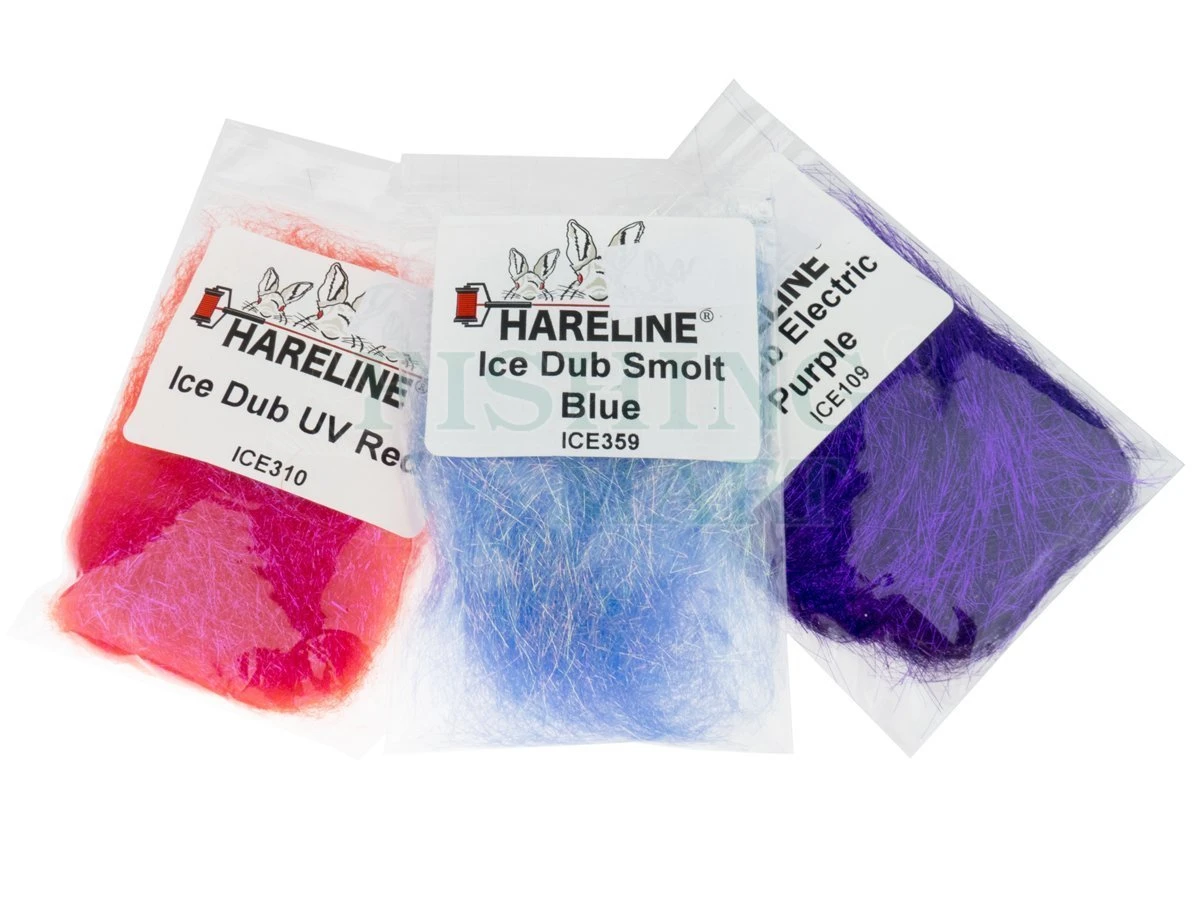 Hareline Ice Dub wspaniale błyszczy, lśni i świetnie się skręca na nici. Na specjalną uwagę zasługują wszystkie kolory, holograficzne, fluo i UV w szczególności.