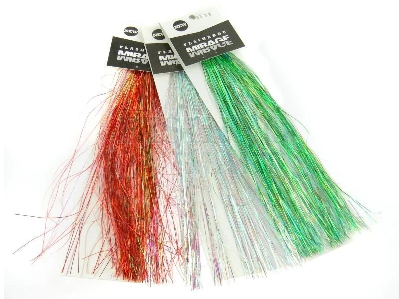Flashabou Mirage Blends to ciekawa mieszanka delikatnych włosów Flashabou mieniących się na różnymi kolorami.