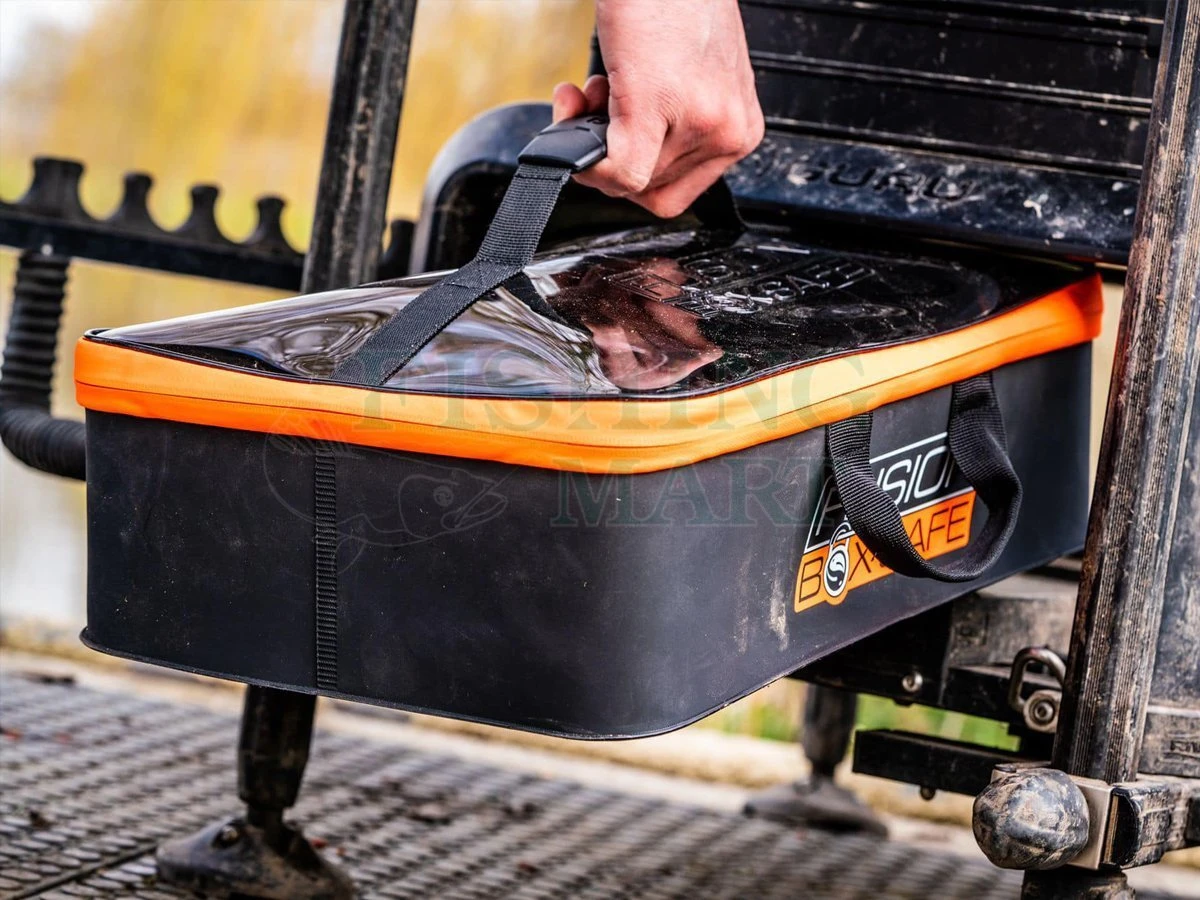Ten system idealnie pasuje pod szufladę platformy Guru lub Rive Seatbox i blokuje się na swoim miejscu dzięki magnesom wbudowanym w podstawę Box Safe. Safe Box posiada specjalnie zaprojektowany uchwyt do przenoszenia i montowany z przodu uchwyt, ułatwiający transport i łatwy dostęp.