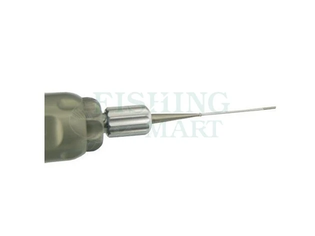 W zestawie znajduje się 5 igieł do much tubowych, które mocuje się od strony rączki, którą obracamy szczęki.