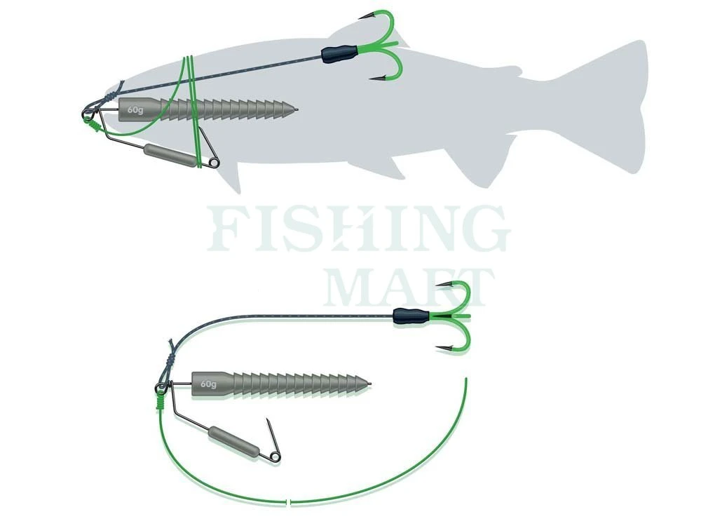 Bardzo prosty i skuteczny systemik przeznaczony do łowienia sumów na martwą rybkę. Wystarczy umieścić obciążenie w przynęcie (martwa rybka, gumowa przynęta) oraz zabezpieczyć specjalnym klipsem i gotowe! W antystatycznym wykończeniu – gumowana otulina MADCAT A-STATIC zmniejsza tworzenie się pola elektrostatycznego, dzięki czemu cała przynęta jest mniej podejrzliwa dla sumów. UWAGA: otulina może zdzierać się wraz użytkowaniem haków. Dostępna w dwóch rozmiarach: 60 i 100 g (rozmiary kotwic: 1/0 i 2/0).