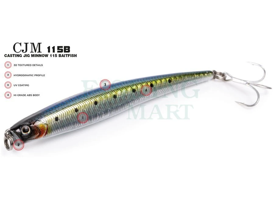 Przynęty Molix Casting Jig Minnow Baitfish posiadają korpus wykonany z tworzywa ABS jest bardzo odporny. Technologia 3D i powłoka UV sprawiają, że kolory są bardziej żywe, trwałe.