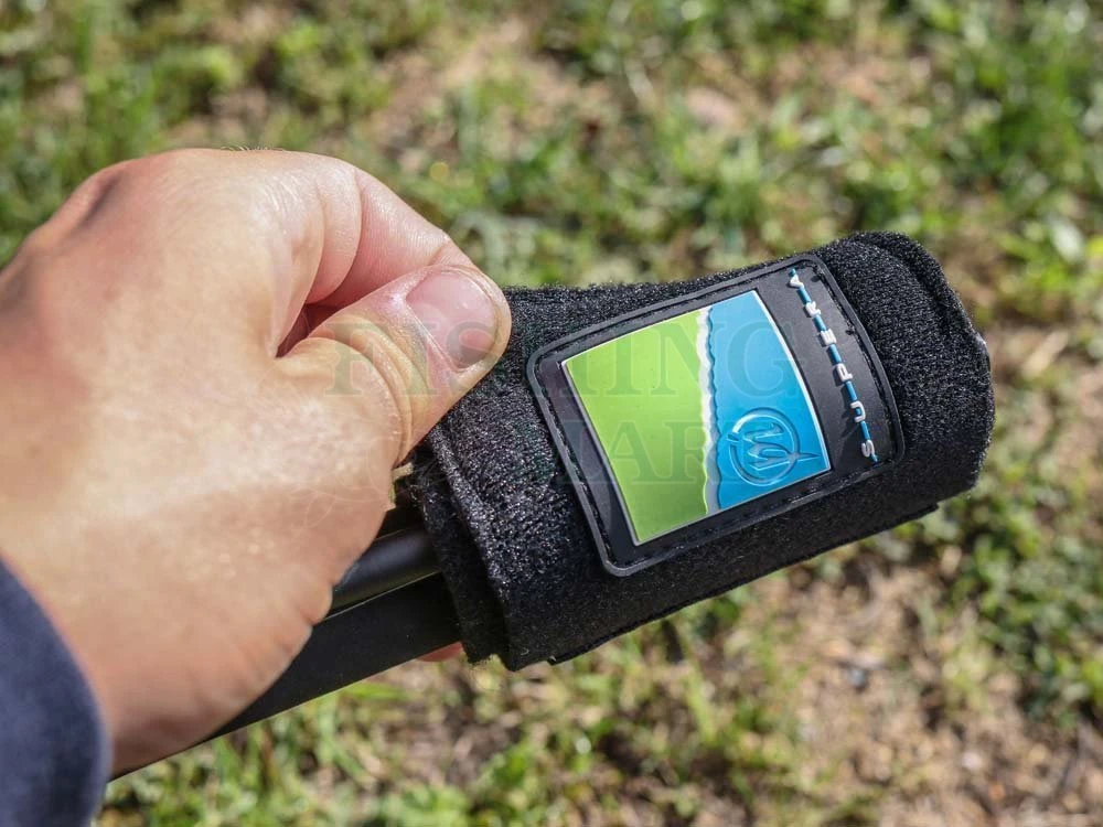 Większa opaska posiada zewnętrzną kieszeń, która została zaprojektowana do bezpiecznego przechowywania gotowych koszyczków, bez ryzyka złamania szczytówek/przelotek wędek.