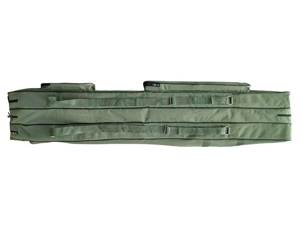 Wyściełany pokrowiec na 3 wędki Wyściełany pokrowiec na wędki jest idealny do transportu wędek. 3 oddzielne przegrody z zamkiem błyskawicznym i miejscem na kołowrotek pozwalają z łatwością transportować 3-5 uzbrojonych wędek. Dodatkowo Rod-case posiada 2 obszerne zewnętrzne kieszenie na sprzęt typu uchwyt na wędkę itp. Dwa paski naramienne (funkcja nośna plecaka) oraz dodatkowe uchwyty do przenoszenia. Dostępne w dwóch różnych rozmiarach. Materiał: 100% poliester. VE: 1 szt.