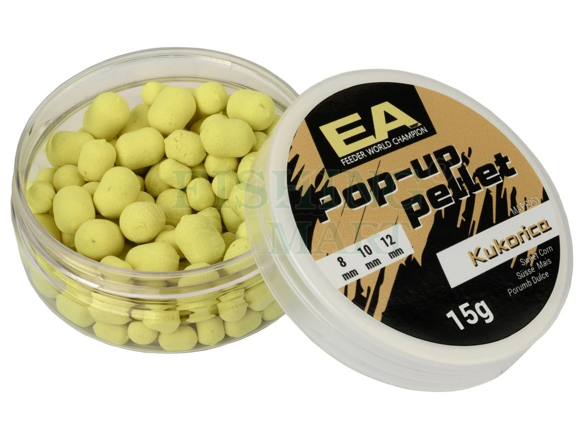 Opierając się na sukcesie pelletu EA Dual Wafter, Maros wprowadził nową linię przynęt haczykowych na rynek, Pop-Up Pellets EA. Dostępne w 5 różnych odcieniach kolorystycznych i smakach, dzięki czemu zawsze można dopasować je do warunków połowów. Pojemniki zawierają mieszankę pelletów w rozmiarach 8-10-12 mm, dzięki czemu oferują wiele kombinacji.