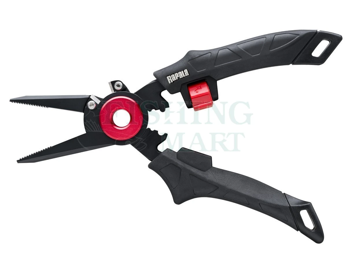 Wytrzymałe szczypce wykonane ze stali nierdzewnej i pokryte warstwą Cerakote®, która zapewnia im dodatkową ochronę przed ścieraniem i korozją. Szczypce magnetyczne są wyposażone w opatentowany przez Rapala®mechanizm „Mag Spring” – magnetyczną „sprężynę” wbudowaną poniżej osi obrotu szczęk, składającą się z dwóch odpychających się magnesów, które otwierają szczęki, co ułatwia operowanie szczypcami jedną ręką. Nierdzewne stalowe szczęki swobodnie przecinają dowolny rodzaj plecionki, nawet do 15lbs. Ergonomiczne, wygodne rękojeści oblane tworzywem zapewniają komfort użytkowania. W zestawie z neoprenową pochewką i smyczą