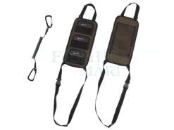 Idealny sposób na transport wędzisk w samochodzie, ten stojak może ich pomieścić aż trzy. Dostarczony z mocną sprężynową linką, którą można rozwiesić pomiędzy siedzeniami lub pod sufitem by móc przewozić nawet dłuższe wędziska.
