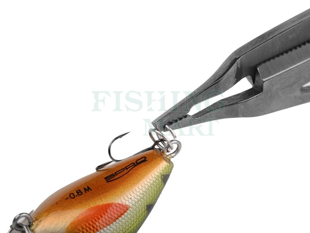 Kompaktowe i praktyczne szczypce zaprojektowane specjalnie do otwierania najmniejszych kółeczek łącznikowych. Wyposażone w ostrza do przecinania plecionki i żyłki. Te szczypce nie zardzewieją, ponieważ części ze stali nierdzewnej zostały dodatkowo pokryte warstwą tytanu.