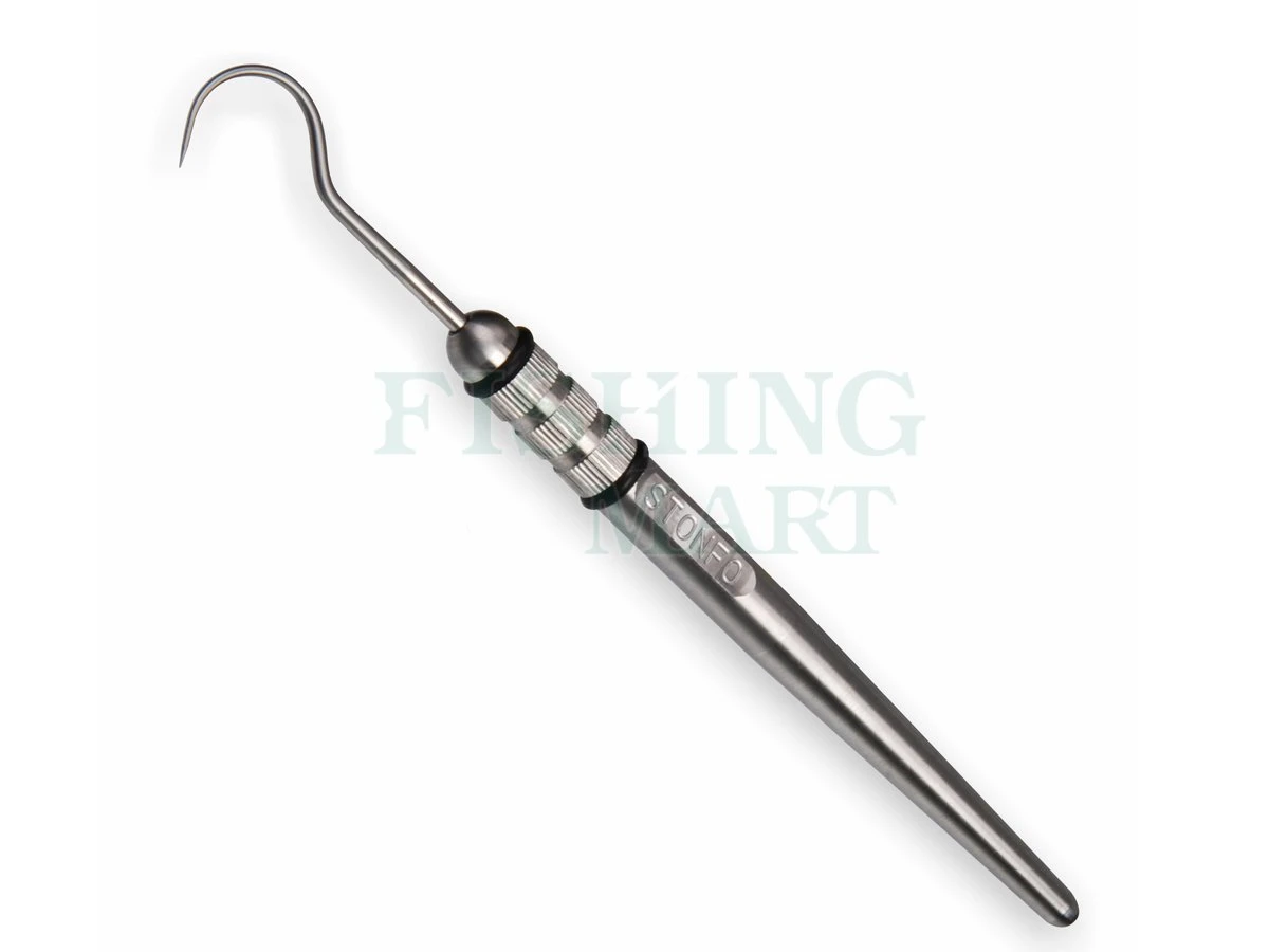 Zagięta igła Stonfo ze stali nierdzewnej w charakterystycznym kształcie. Niezastąpione przy wyskubywaniu dłuższych włókien dubbingu z tułowia muchy czy tworzonego dubbing brusha.