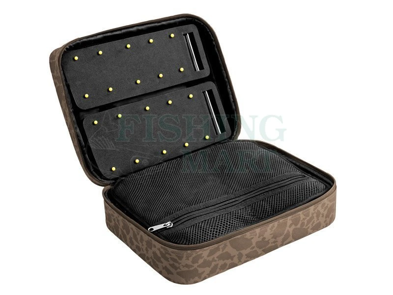 Główna przestrzeń zapewnia dużo miejsca do przechowywania różnych drobiazgów, elementów zestawów i narzędzi potrzebnych do zrobienia przyponów. Ponadto zawiera 4 praktyczne pudełka, w których Twoje drobiazgi są zawsze bezpieczne i uporządkowane. Środkowa przegroda jest wyposażona z jednej strony w małe kieszonki, a z drugiej w dużą kieszeń z siatki. Dzięki takiemu projektowi zawsze możesz zobaczyć, co jest w środku i bez problemu znaleźć niezbędny sprzęt. RigStation zawiera również dwie piankowe powierzchnie, które idealnie nadają się do idealnego ułożenia i mocowania twoich przyponów. Zaletą tej torby jest również uchwyt znajdujący się w górnej części, dzięki któremu nigdy nie przechylisz torby podczas transportu, a wszystkie znajdujące się w niej elementy pozostaną na swoim miejscu. Wyposażony jest również w wysokiej jakości zamki. RigStation uzupełnia naszą ofertę CARPATH, która z pewnością ucieszy wszystkich fanów tego kamuflażu.