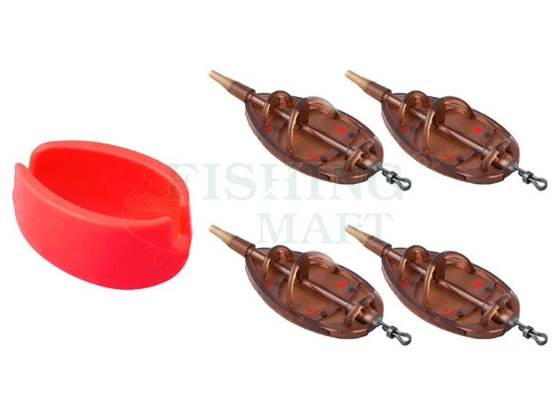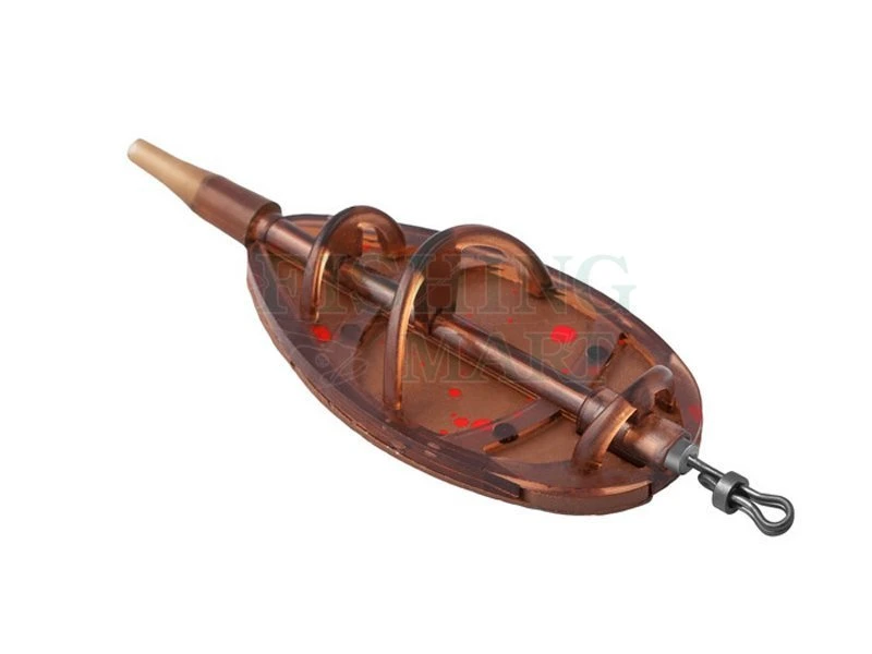 Zestaw najczęściej używanych feederów gwarantujących udany połów metodą feederową. Zestaw zawiera 4 warianty wagowe feederów (20 g, 30 g, 40 g, 50 g) po 1 sztuce (5,5 x 3 x 1,5 cm). Ponadto w opakowaniu znajduje się praktyczna foremka do obklejenia feedera w krótkim czasie. Całość wykonana w bardzo atrakcyjnym wzornictwie inspirowanym legendarną serią wędek Magma. Feedery są ciemnobrązowe z czerwonymi plamami. Foremka jest koloru czerwonego. Użyte materiały są bardzo trwałe i nie wykazują żadnych śladów zużycia nawet po długim czasie. Dzięki wyjątkowemu aerodynamicznemu kształtowi możliwe jest osiągnięcie naprawdę dalekich wyrzutów. Obciążnik ołowiane należy pociągnąć od góry do dołu, przyczyniając się do doskonałego rozkładu masy, ale także do stabilizacji na dnie w miejscu połowu.